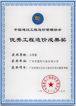 《廣州市西江引水工程初步設計概算審核》獲2012...