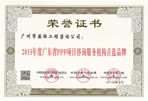 2015年度廣東省PPP項目咨詢服務機構首選品牌