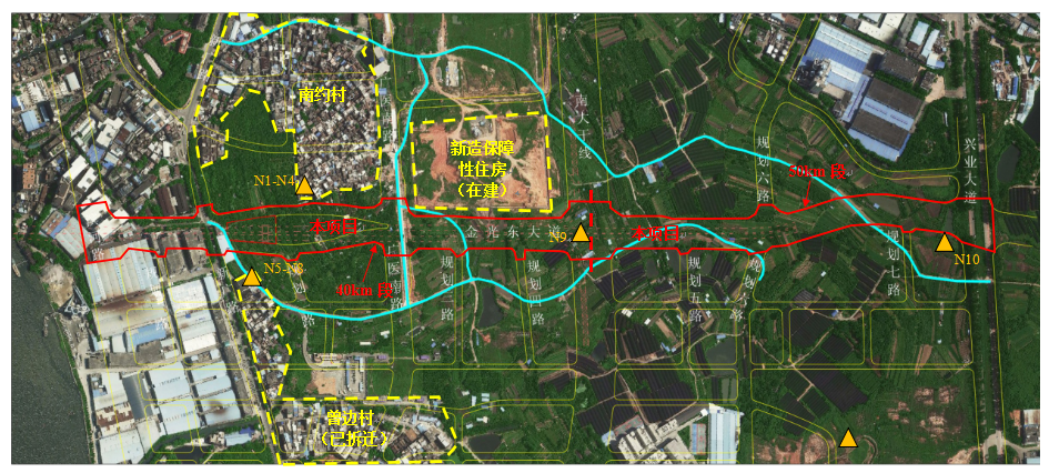 道路設計全長約1.82km。道路規劃為城市主干路,設計車速40、50km/h。由于保護古樹需要,濱河路至南大干線分離作東線道路與西線道路,南大干線至興業大道為一體式路基。主線道路規劃紅線標準段寬度為60m;分離式道路路段東線規劃寬度19米,西線為21米。行車道路面結構類型采用瀝青混凝土路面。項目設計內容主要是道路設計范圍內的路基工程、路面工程、人行道、交通標線和標志、雨污水工程、橋梁工程、景觀綠化、照明工程等。根據道路建設需要,征收土地面積109255.26平方米。