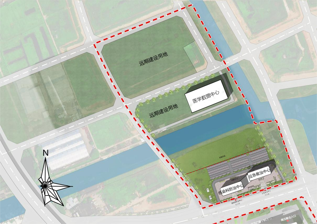 本項目的建設內容主要為在現有南沙院區北側新增地塊內新建醫學數據中心以及公共衛生中心,醫學數據中心建設內容包括數據中心主機房、輔助區和支持區、管理及業務、數據中心科研等用房及配套設施;公共衛生中心建設內容包括門急診、醫技、住院等用房及配套設施。項目新建總建筑面積為64370㎡,其中醫學數據中心建筑面積為40000㎡,公共衛生中心建筑面積為24370㎡,床位200床(包括重大疫情及生物安全事件病房、核輻射化學中毒、燒傷爆炸綜合救治病房、應急分類及綜合處置(群體性創傷)病房)。項目總平面布置見圖1。