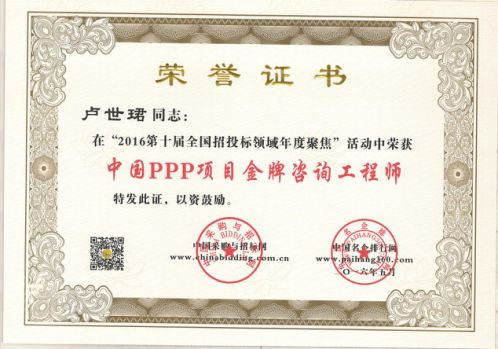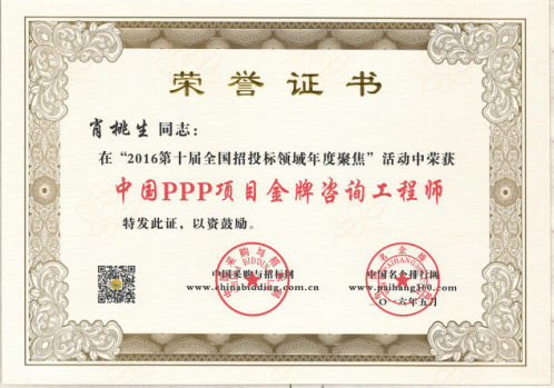 為在PPP咨詢行業(yè)內樹立標桿企業(yè),國家發(fā)改委中國投資協(xié)會項目投融資專業(yè)委員會、中國采購與招標網、中國名企排行網聯(lián)合主辦了“第10、11屆PPP咨詢服務機構評價推薦”活動。秉承“公開、公平、公正、誠實信用”的原則,最終遴選出年度中國PPP咨詢服務機構類大獎。在活動中,廣州市國際工程咨詢公司榮獲“2015、2016年度中國PPP項目咨詢服務機構百強(前十強)”,”2016年度中國PPP項目咨詢服務機構十大頂級品牌”、”2016年度中國PPP項目咨詢服務最佳智庫獎”、”2015年度廣東省PPP項目咨詢服務機構首選品牌”、”2015年度市政基礎設施PPP項目咨詢服務機構首選品牌”等集體榮譽類大獎。此外,公司PPP項目咨詢中心主任肖桃生、副主任盧世君、陳偉雄、孫亮分別榮獲2015、2016年度中國PPP項目金牌咨詢工程師稱號。